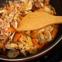 ⑤具材をキャベツで覆い、その上にあさりを乗せて蓋をする。